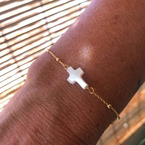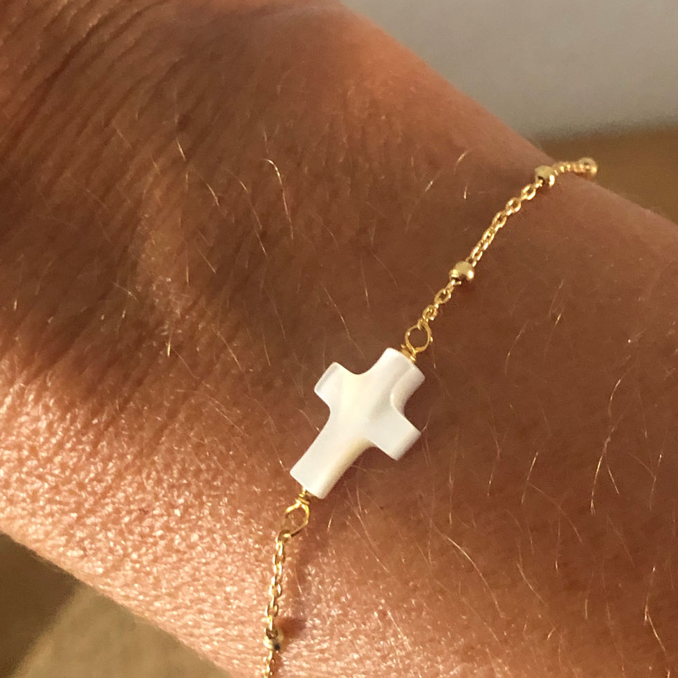 Joli bracelet avec petite croix en nacre blanche dimension 12X8mm